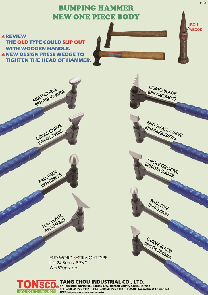 Auto Body Bumping Hammer New One Piece. All hammer heads made from chrome-vanadium (Cr-V) and multi-curved in faces: angle face, flat blade, cross curve, ball peen, square face, end small curve, angle groove, multi-curve and more.