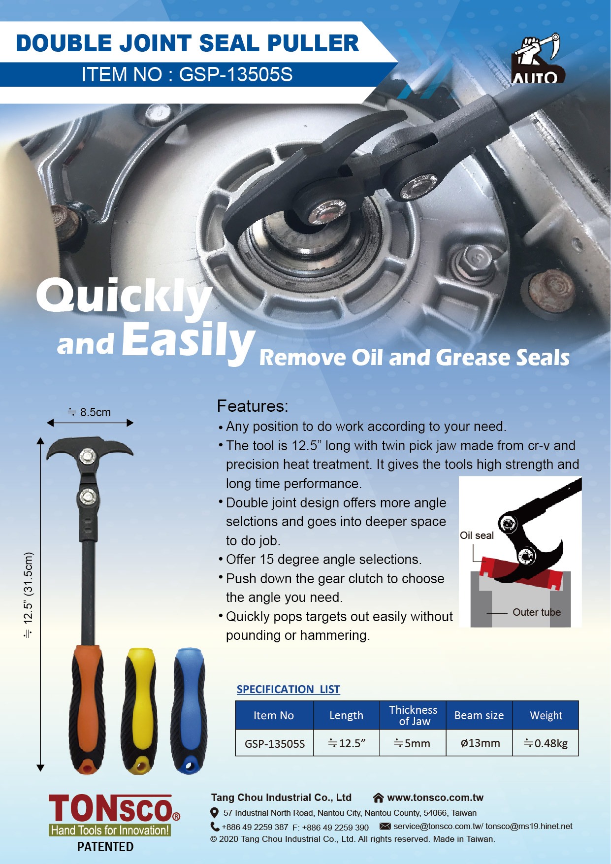 Home » Products » New Launch » Double joint seal puller Double joint seal puller Q'ty : Add To Inquiry gsp-13505s.jpg Description Related Products Twins Pry Bar Set Impact Driver Kit Hammer Rebar Bender Combination Pry Bar Set GearJaw Pry Hammer With Magnetic Nail Holder All go combination tool kit