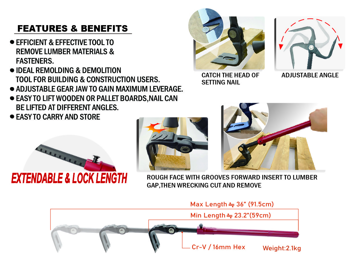 Home » Products » Demolition Wrecking Tools » GEAR JAW WRECKING BAR GEAR JAW WRECKING BAR Q'ty : Add To Inquiry Description Related Products AllGo Combination Tool Kit for Home Improvement, Building & ... Gear Jaw Interior Decor Wrecker with Trident Nail Puller Roc... TRIDENT WRECKER Extendable Free Long Wrecking Bar with Wrecking End GearJaw Free Long Pry Bar GearJaw Wrecking Bar (Hex beam)