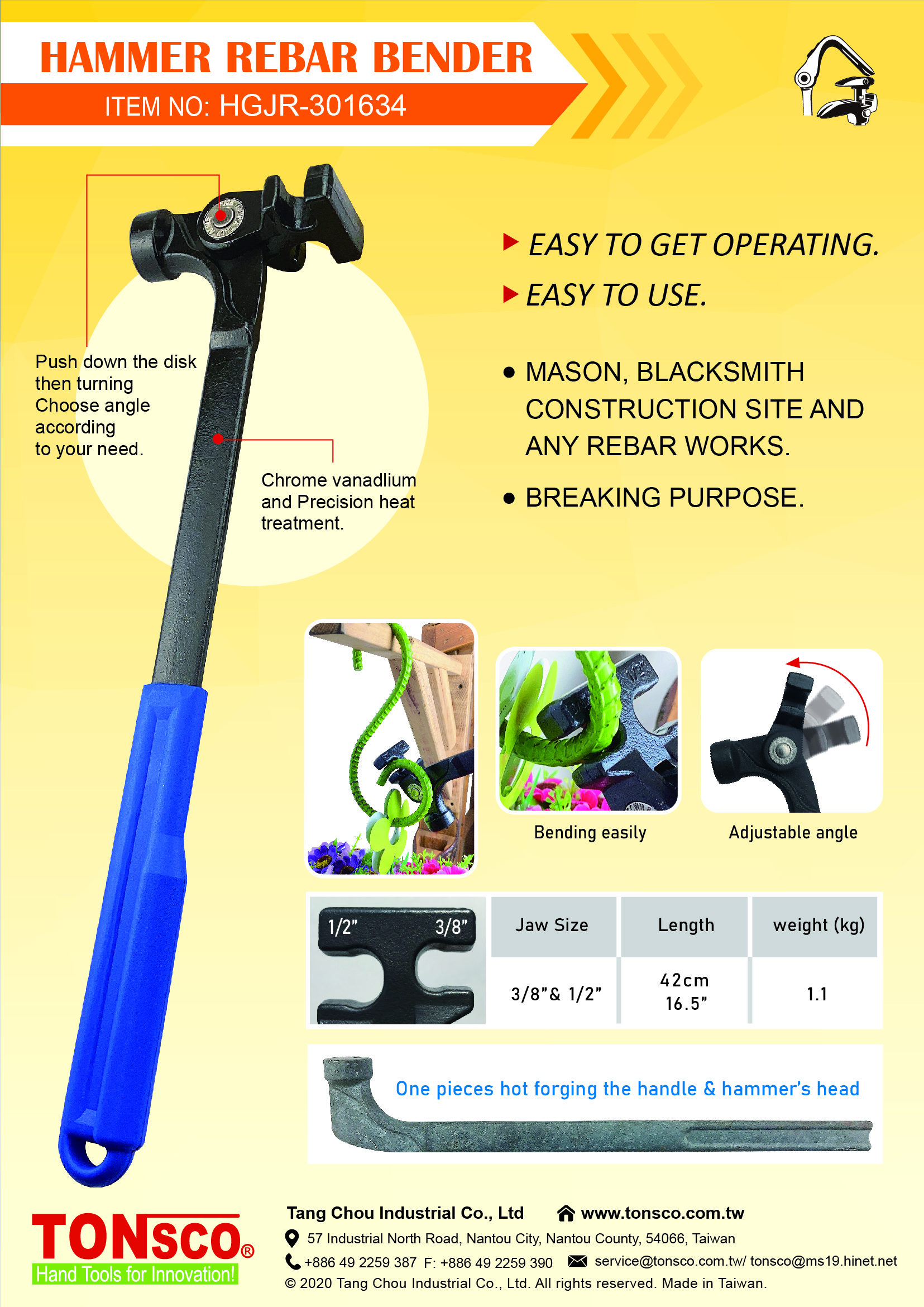 Home » Products » New Launch » Hammer Rebar Bender Hammer Rebar Bender Q'ty : Add To Inquiry hgjr-301634-01.jpg Description Related Products Combination Pry Bar Set Impact Driver Kit Twins Pry Bar Set GearJaw Pry Hammer With Magnetic Nail Holder Back Hook Building Pry Bar