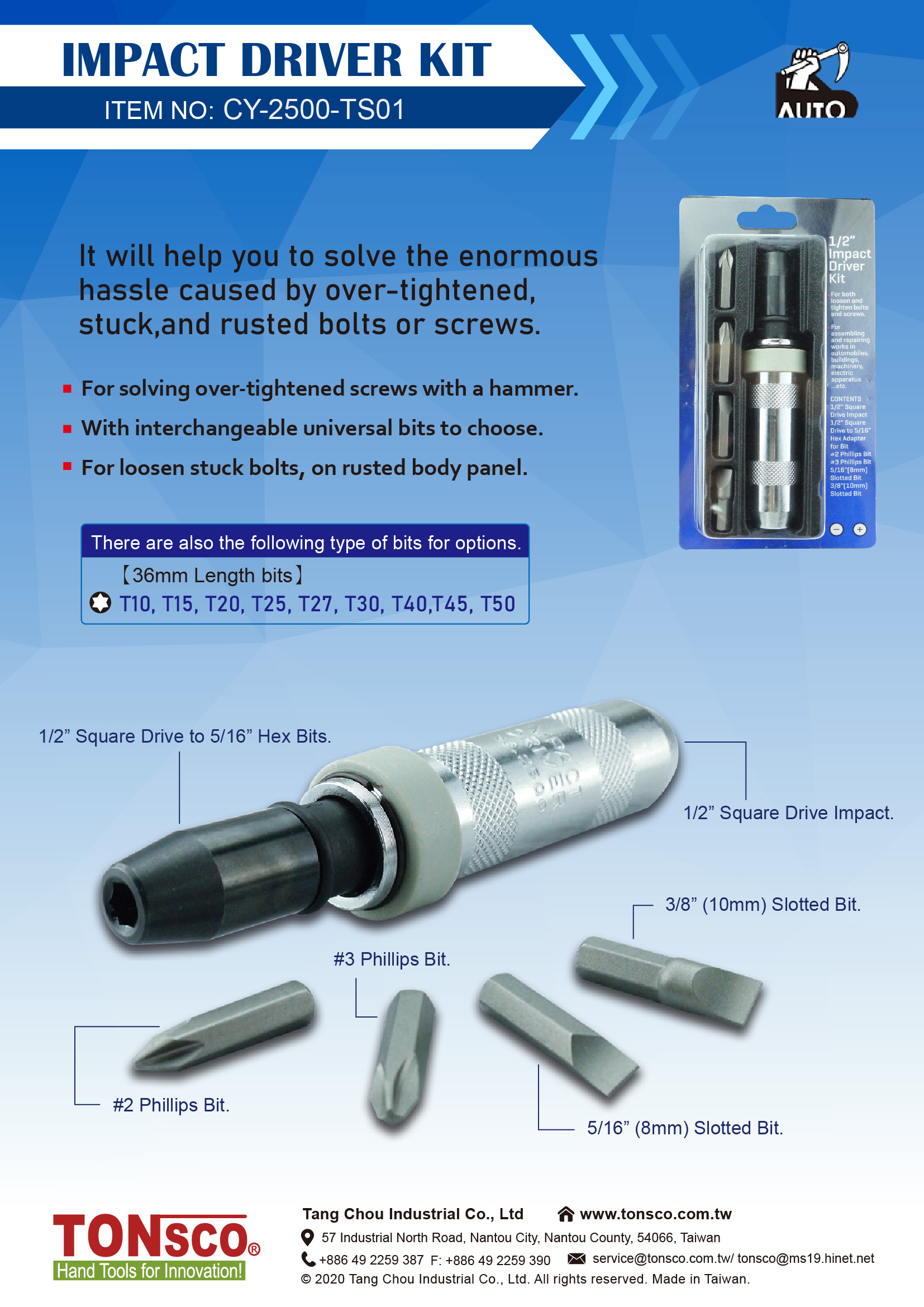 Home » Products » New Launch » IMPACT DRIVER SET IMPACT DRIVER SET Q'ty : Add To Inquiry cy2500-ts01-01.jpg Related Products GRENADE ATTACK DRIVER CABLE BENDER-MODEⅠ IMPACT DRIVER SET CAR INTERIOR REMOVER SET