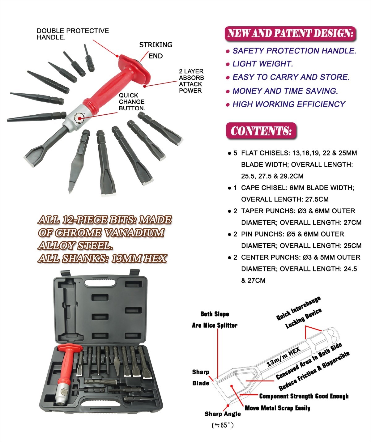 Home » Products » Popular Sets » Interchangeable AllGo Sharp-Edged Chisels and Punches Interchangeable AllGo Sharp-Edged Chisels and Punches Q'ty : Add To Inquiry ascp-13bq12.jpg Description Related Products Interchangeable Punch Set Twins Pry Bar Set All go combination tool kit Impact Driver Kit 12 Pcs Manual Reversible Impact Driver Long Deep Reach All Go Sharp-Edged Interchangeable Chisels a...