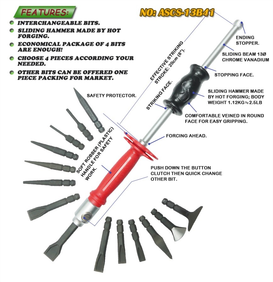 Home » Products » Interchangeable Chisels and Punches » Interchangeable Sharp-Edged Chisels and Punches with Sliding Hammer Interchangeable Sharp-Edged Chisels and Punches with Sliding Hammer Q'ty : Add To Inquiry Description Related Products Interchangeable AllGo Sharp-Edged Chisels and Punches Interchangeable AllGo Sharp-Edged Chisels and Punches for Ma... Interchangeable Lead More Bumping Tool with Sliding Hammer IMPACT DRIVER SET Long Deep Reach All Go Sharp-Edged Interchangeable Chisels a... IMPACT DRIVER SET