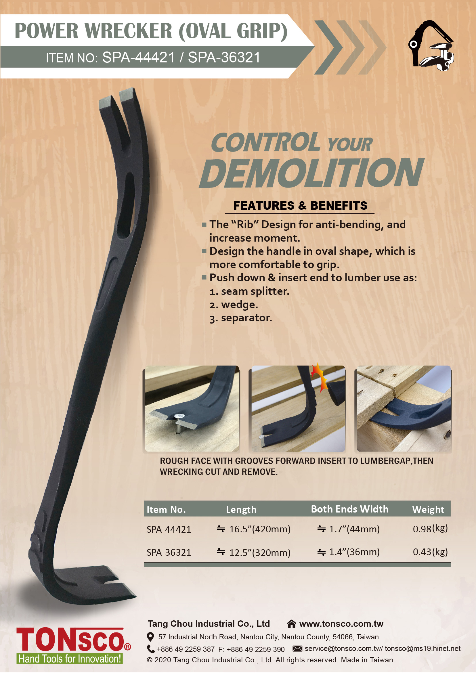 Home » Products » Demolition Wrecking Tools » POWER WRECKER (OVAL GRIP) POWER WRECKER (OVAL GRIP) Q'ty : Add To Inquiry 44421.jpg Related Products GEAR JAW WRECKING BAR GearJaw(R) Crow Bar Both End Extra Long Back Hook Building Pry Bar GearJaw(R) Crow Bar Both End Extra Long GearJaw Interior Decor Wrecker with Wrecking Nail Puller End Extendable Free Long Wrecking Bar with Wrecking End