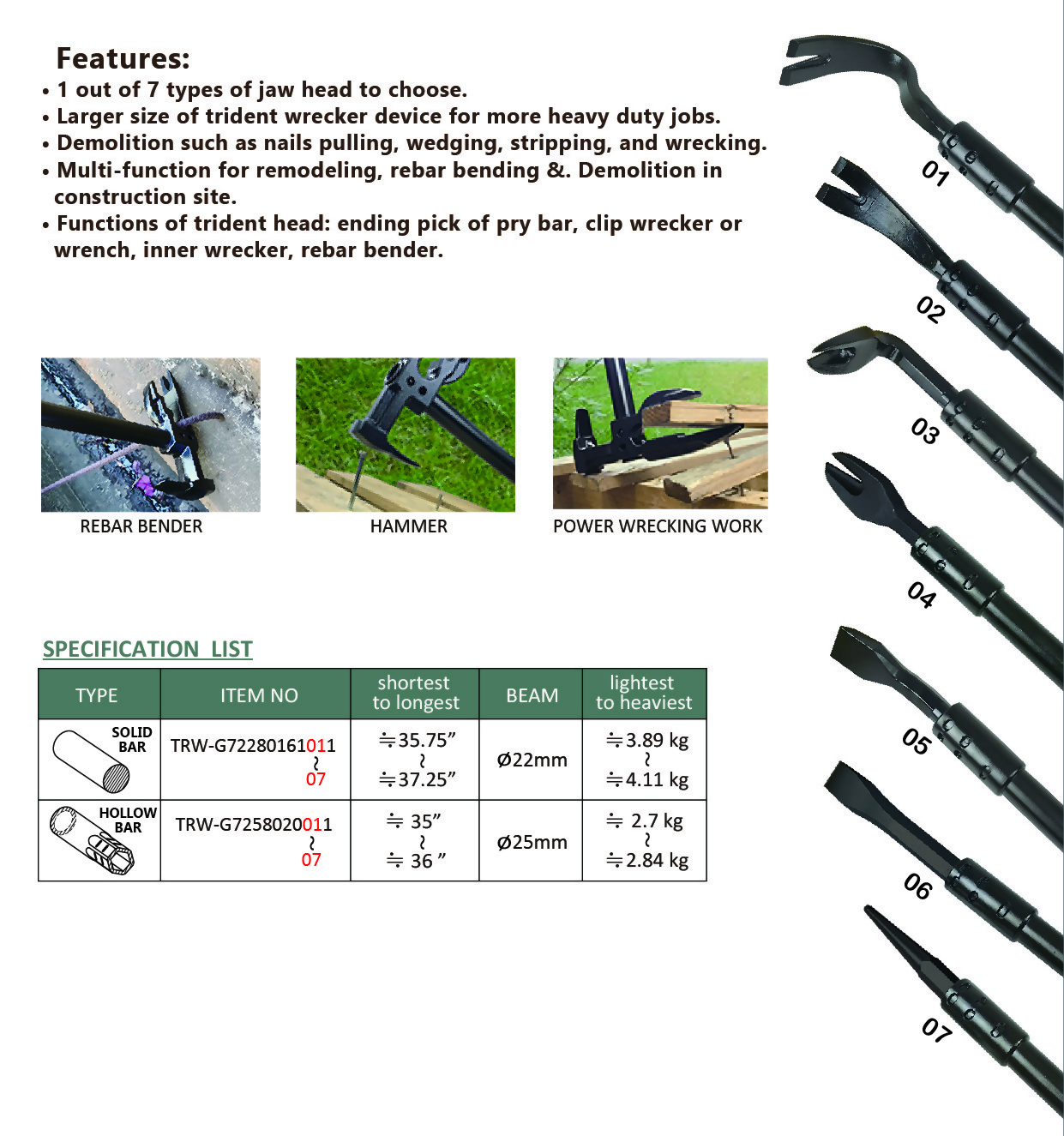 Home » Products » Demolition Wrecking Tools » TRIDENT WRECKER TRIDENT WRECKER Q'ty : Add To Inquiry 3.jpg Description Related Products GearJaw(R) Crow Bar Both End Extra Long GearJaw Extendable Rocking Pry Bar AllGo Whole Bar Long Tube Pry Bar PRY TWEAKING BAR-Flat Back Hook Building Pry Bar